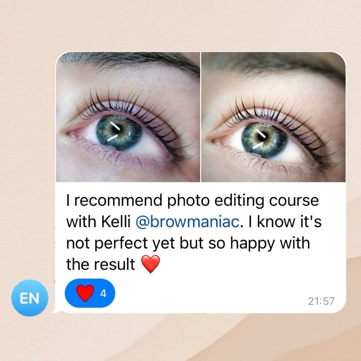 Sotsiaalmeedia sisuloomise koolitus aitab ilutegijal luua pilkupüüdva sotsiaalmeedia konto kaunilt töödeldud fotodega, mis köidab jälgijaid ja aitab nad muuta lojaalseteks klientideks.